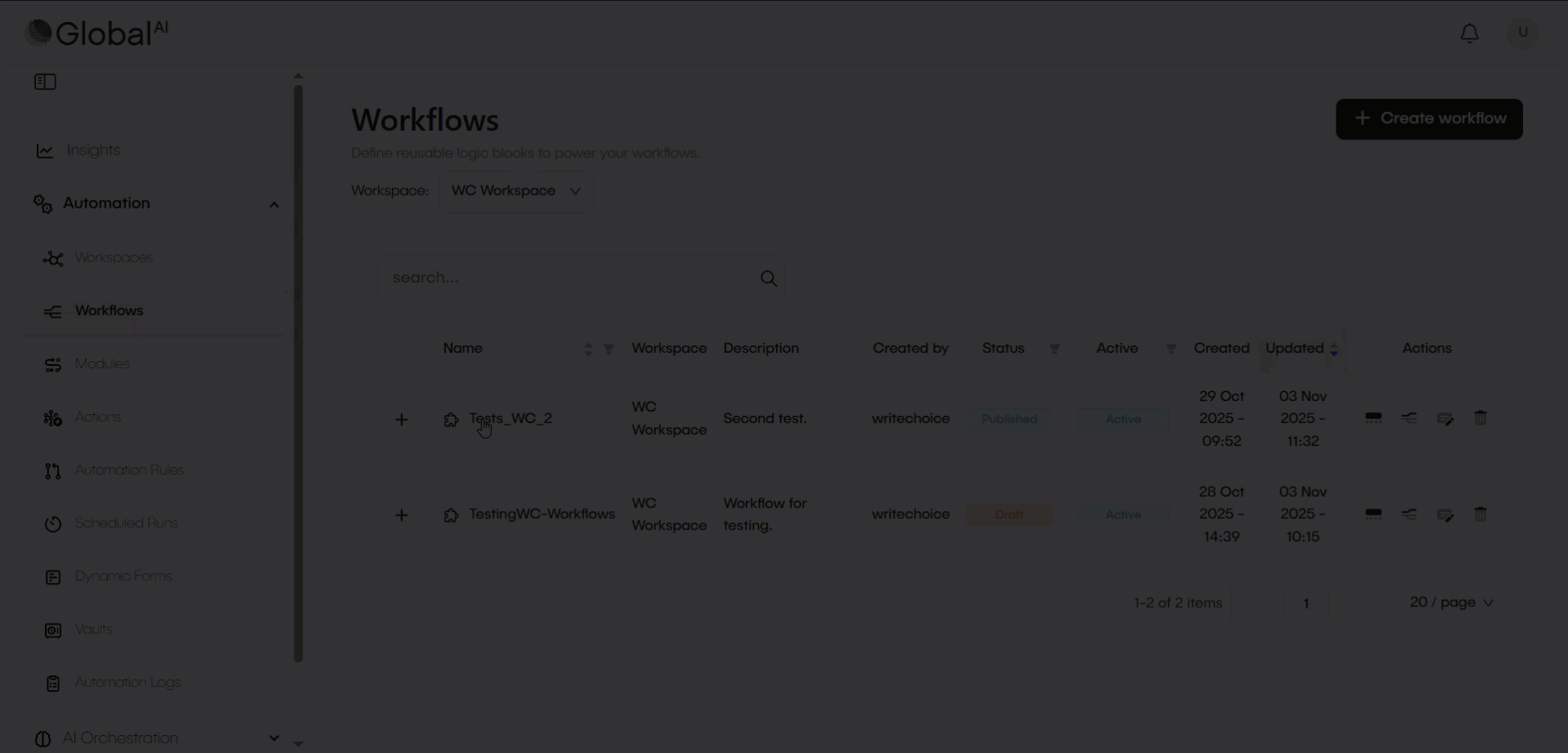 - Navigate to Automation > Workflows > click on your workflow to open it.